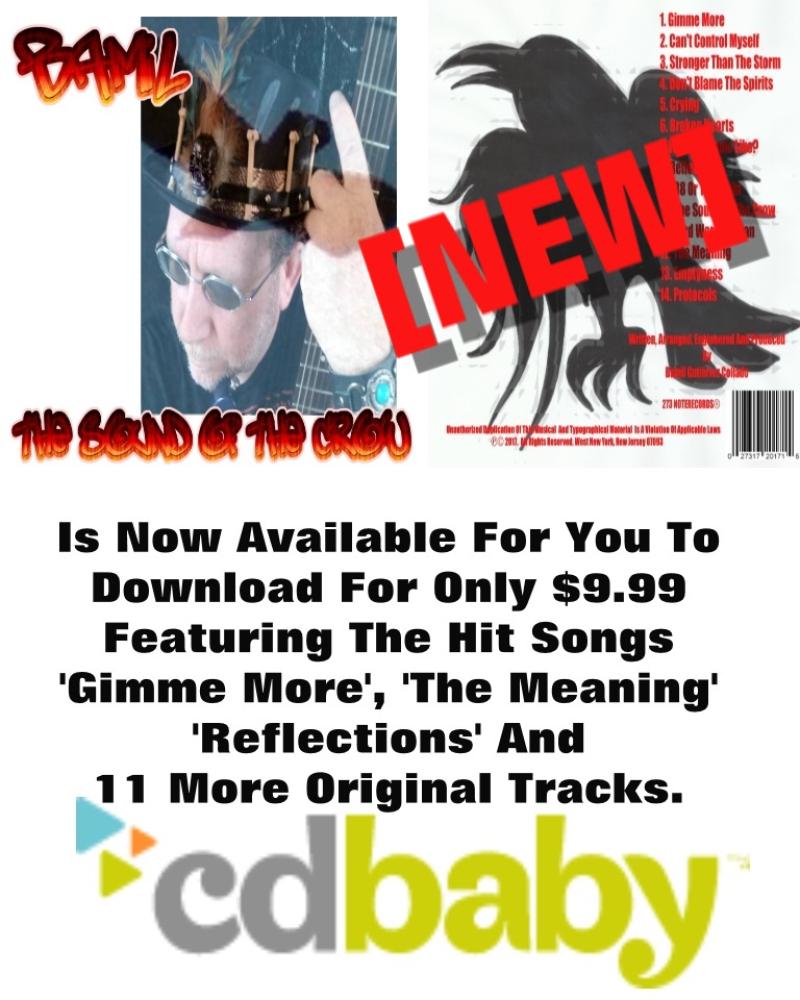 Download Now My New Album 'The Sound Of The Crow' (2017) Now On CDBaby For Only $9.99. Download 14 Original New Tracks Including The Hit Songs 'Gimme More', 'The Meaning' And 'Reflections'. Love My Music? This Is The Chance To Enjoy My Songs With No Stop!!! Enter Here On https://store.cdbaby.com/m/cd/bamil7